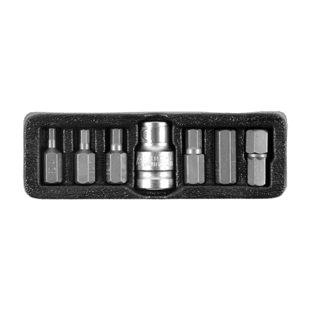 Набір біт HEX ½ " 7шт S2 (пласт кейс) ULTRA (4013202) виготовлений з легованої сталі S2, що поєднує в собі високу твердість (50-53 HRC) з зносостійкістю. Мають центральне глухе отвір, що дає можливість працювати з кріпленнями, які мають нестандартний робочий профіль. Для зручності зберігання і транспортування біти упаковані у пластиковий кейс.